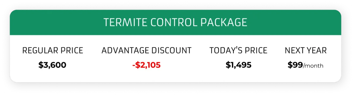 Termite Control provides strong, long-lasting defense starting at $3600 $1,495 for 12 months, then $99/month for continued coverage.